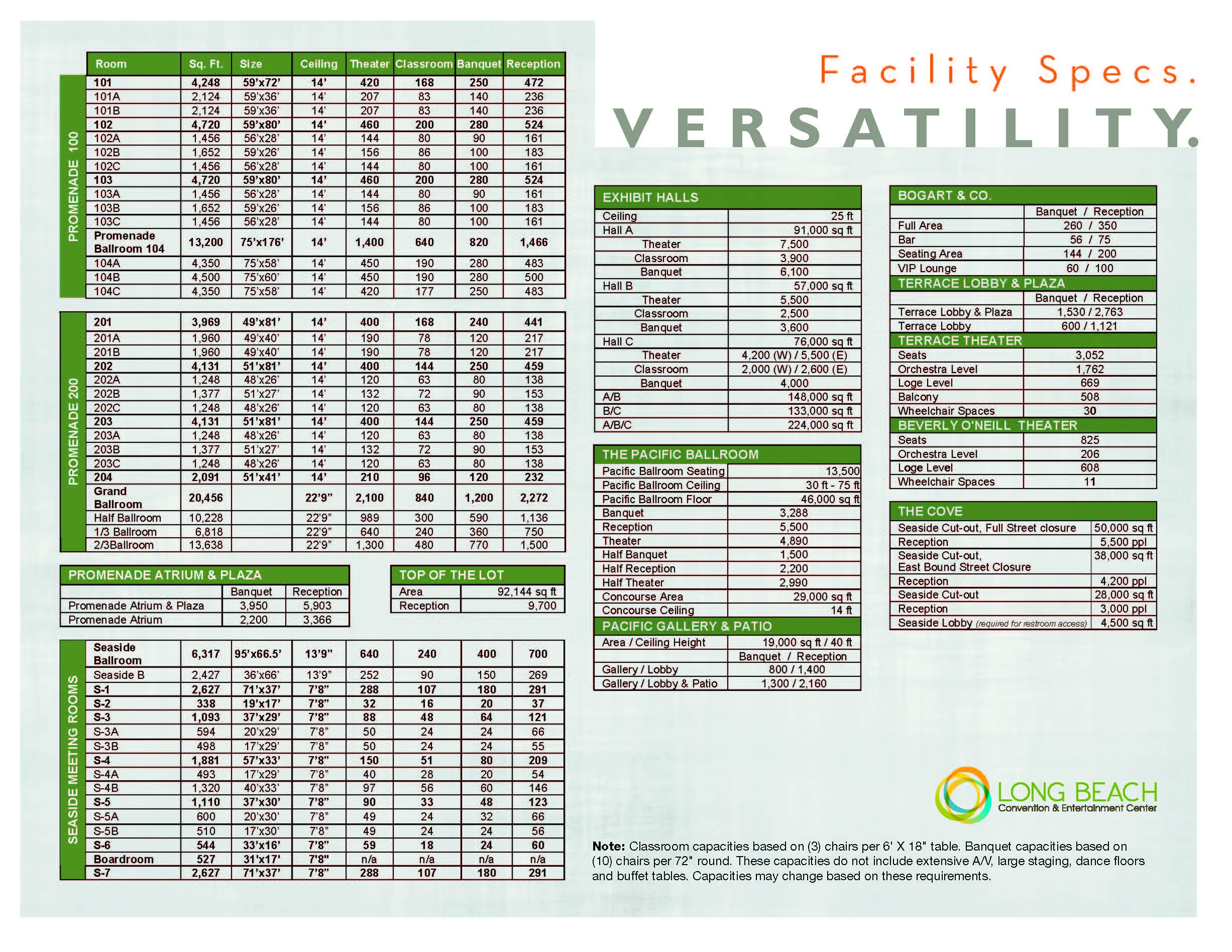 | Classroom | Long Beach Arena Lower Concourse | 0 | 29,000 sq ft |