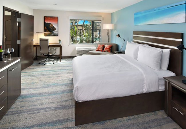 Pamper yourself at Long Beach's newest lifestyle boutique hotel. Relax in an oversized guestroom, each with 50” HD SMART TV’s, bathrooms with rainfall shower heads & shower wands, cabinet enclosed refrigerator and microwave, and blue-tooth enabled speaker alarm clocks. Enjoy our large outdoor heated pool with sundeck, firepit & cabanas. Savor our complimentary enriched continental breakfast, or indulge yourself with a selection from our specialty coffee & fresh fruit smoothie bar. Unwind each evening at our Wave Lounge, serving classic cocktails, locally brewed beer, exceptional appetizers, salads, sandwiches, wraps and pizza.